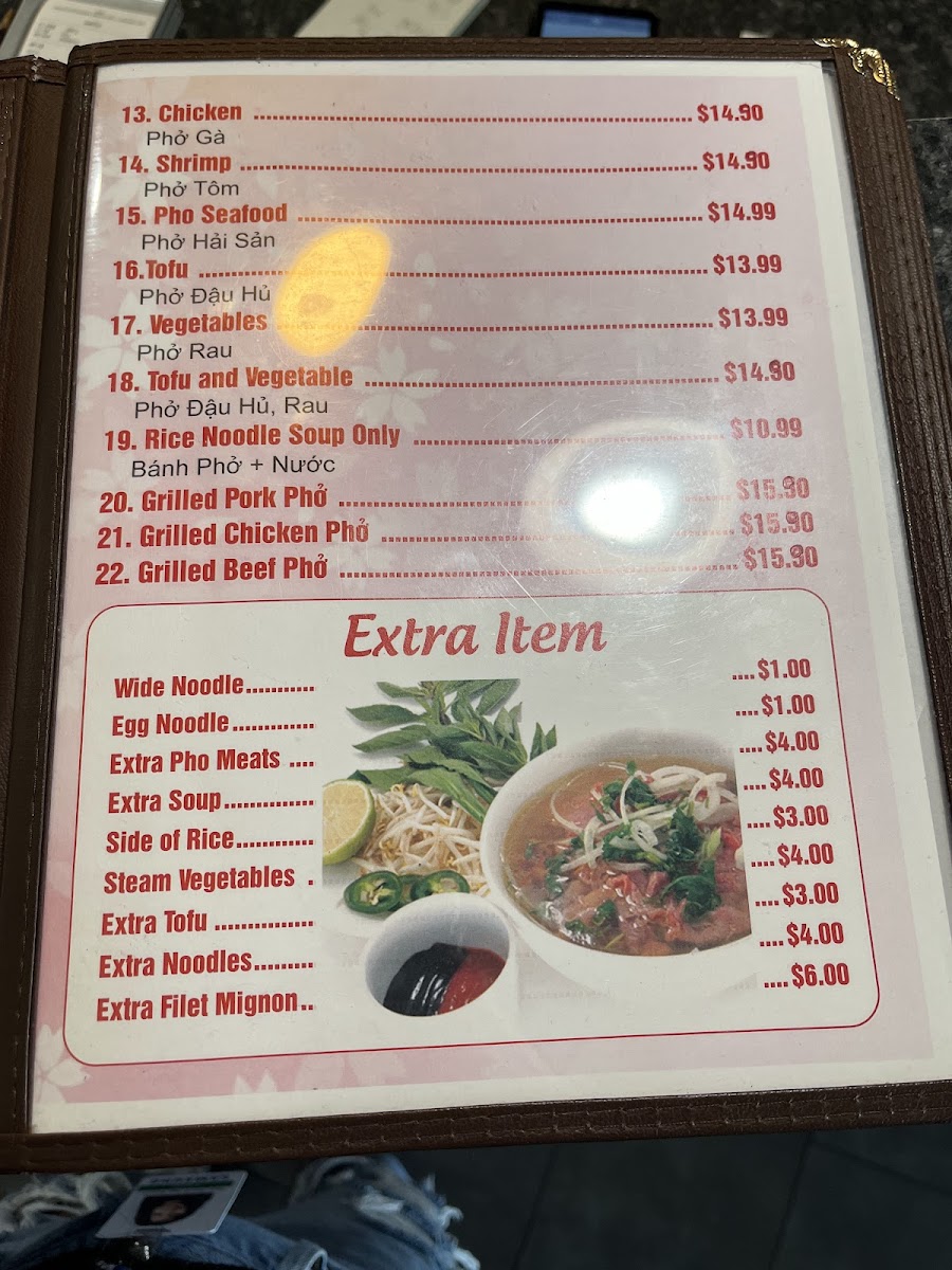 Comes with broccoli, bok choy, and carrots Pho rau.